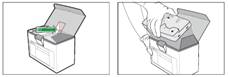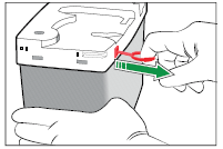 Løft den nye reagenspakken ut av boksen som vist. Trekk den røde pinnen ut av den nye reagenspakken.