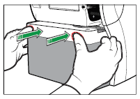 Plasser tomlene på den hvite delen av reagenspakken, og dytt reagenspakken inn i rommet til den klikker på plass. Analysatoren lukker innløpet hvis pakken er riktig satt inn. Angi nødvendige data.
